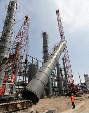 東北分公司天津金偉暉項目完成烴重組裝置設備吊裝