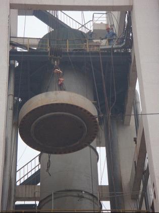 合成塔主體吊裝就位后,隨著外圍配管及塔內觸媒填充結束,定于9月27日吊裝合成塔大蓋。當日,天公頗不作美,秋風瑟瑟,冷雨連連,給吊裝帶來了一定難度。分公司經理李杰斌早早到達現場,與技術員、吊裝負責人最后核定技術參數和起吊方案。大蓋重50噸,采用卷揚機提升法起吊至60米高的合成塔頂。整整一天,李杰斌冒雨堅守在吊裝現場,仔細、認真地察看吊裝動態。一秒不停的大雨將在場的施工人員淋得透濕。然而,惡劣的天氣阻擋不了大蓋的徐徐上升,下午五點合成塔大蓋順利就位。