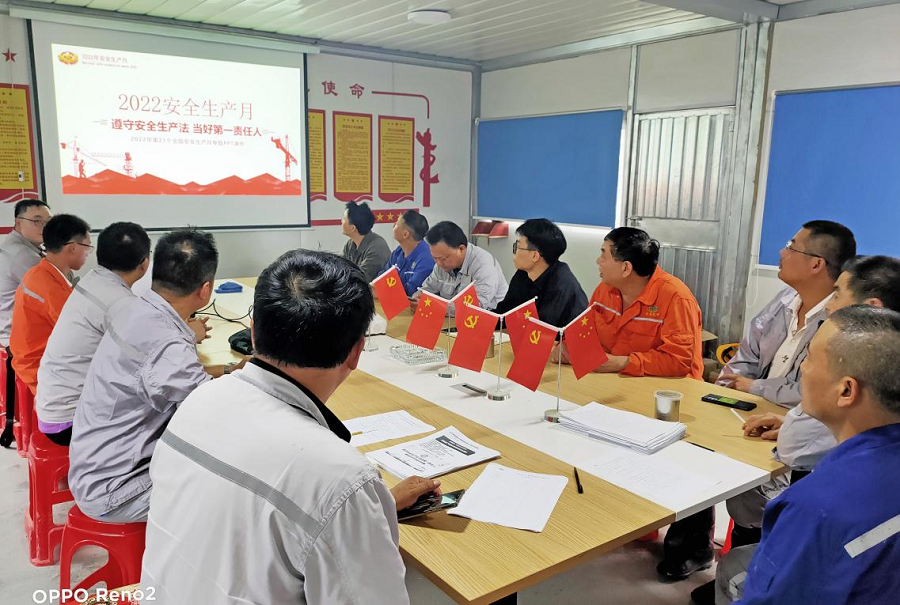 進入6月份,公司各級黨組織理論學習中心組陸續開展習近平總書記關于安全生產重要論述專題學習,通過專題研討、集中宣講、培訓輔導等形式,引導各級領導干部樹牢安全發展理念,切實壓實安全生產責任;將保護人民群眾生命健康安全作為最現實的“國之大者”,牢牢守住安全生產底線紅線,以實際行動和實際效果堅決捍衛“兩個確立”,做到“兩個維護”。在公司重慶涪陵項目部,“黨員身邊無違章”活動正在項目黨員中蓬勃開展。黨員在施工現場亮出自己的黨員身份,帶頭嚴格落實安全責任,嚴格落實公司各項安全管理制度;黨員率先做好項目的安全指導和監督檢查,帶動身邊群眾提升安全生產意識,排查現場安全隱患,爭當“無違章員工”,以實際行動迎接黨的二十大勝利召開。