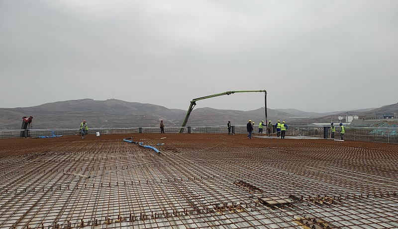 該后處理裝置高40米、寬42米,是聚甲醛項目最高單體工程。面對施工現場天泵受高大跨度和場地限制、混凝土澆筑危險因素多、施工難度大等不利因素,項目部積極與設計代表溝通,在樓頂進行優化組織施工,既保證施工安全又提高了施工效率。經過項目施工人員日夜接續奮戰,圓滿完成了此次封頂施工任務。