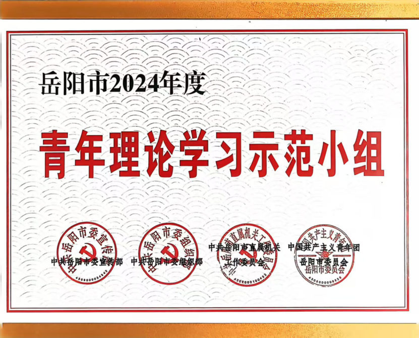 另訊,岳陽市委宣傳部、市委組織部、市直機關(guān)工委、共青團岳陽市委印發(fā)《關(guān)于表彰2024年度青年理論學習先進典型的通報》,公司團委青年理論學習小組被評為“岳陽市青年理論學習示范小組”。
