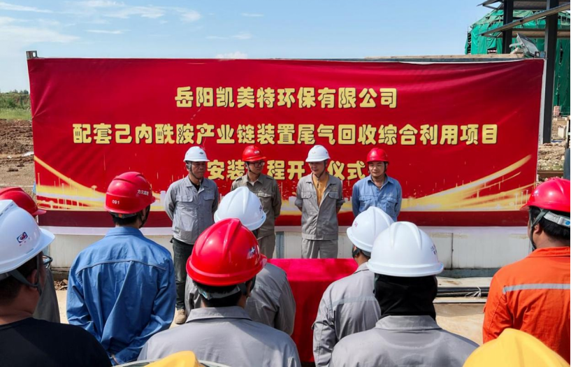 8月2日下午,由中南公司承建的岳陽凱美特環保有限公司配套己內酰胺產業鏈裝置尾氣回收綜合利用項目安裝工程在項目現場舉行開工儀式。