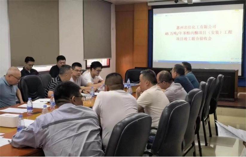 近日,由公司承建的惠州忠信化工有限公司45萬噸/年苯酚丙酮項目(安裝)工程項目順利通過竣工驗收交接。