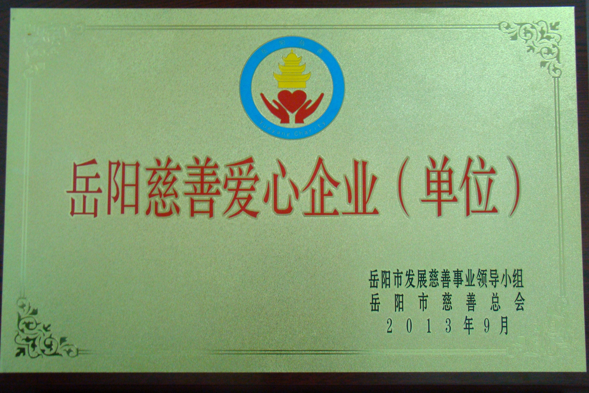 公司獲“岳陽(yáng)市慈善愛(ài)心企業(yè)”榮譽(yù)稱號(hào)