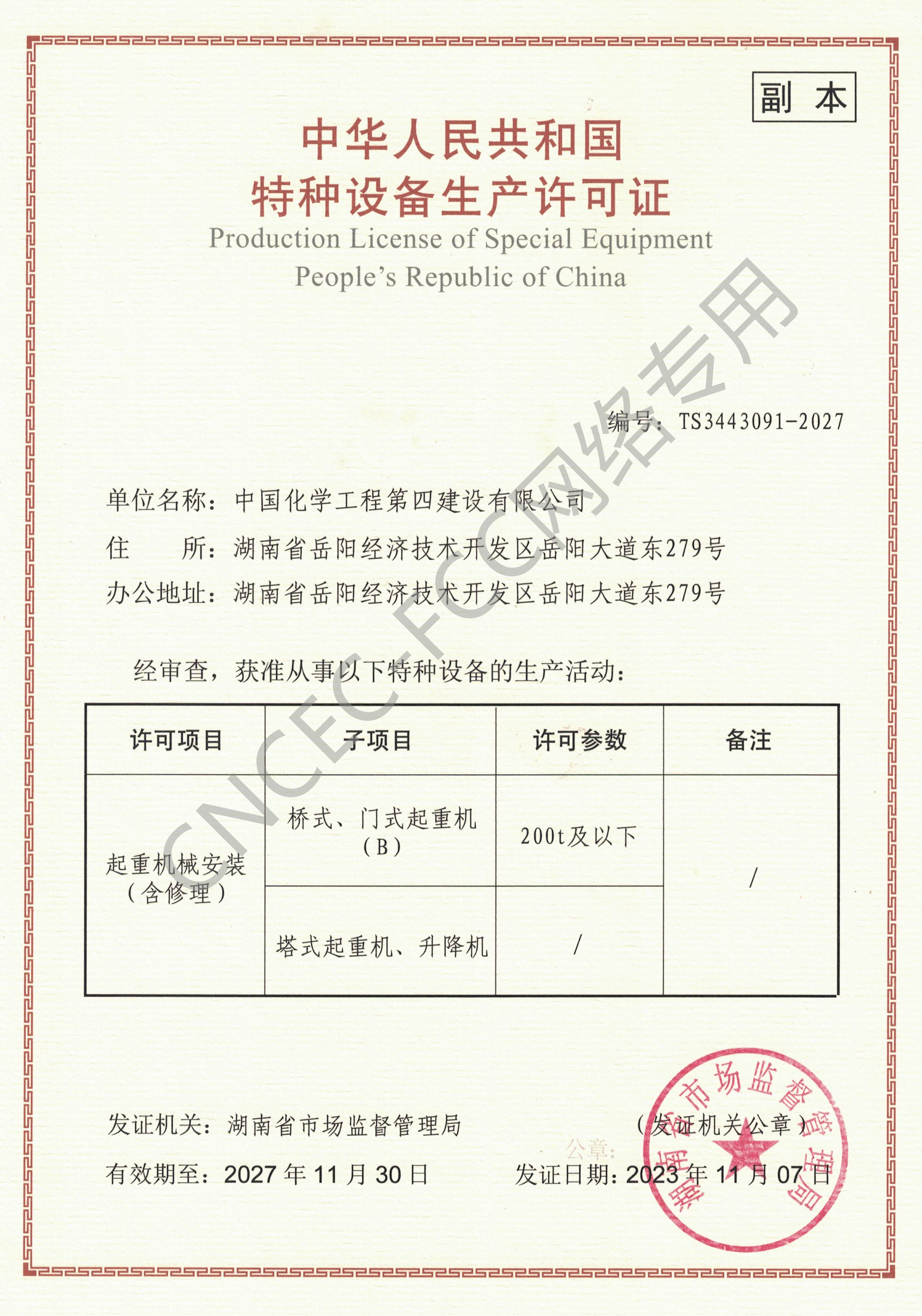 起重機(jī)械設(shè)備安裝修理許可證
